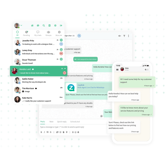 ZappHub is a collaborative web-based live chat solution that allows multiple people to interact simultaneously with a linked WhatsApp account and